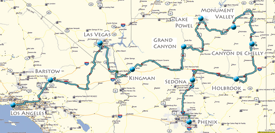 Ajoutez une ou plusieurs nuits sur les étapes que vous souhaitez, pour faire une pause ou pour aller visiter un site, Grand Canyon, Las Vegas, etc., consultez nous. Nous conseillons aux groupes moto de louer également une voiture, pour les bagages et les provisions, mais aussi pour les pilotes et passagers moto qui pourront se reposer le cas échéant dans cette voiture, avec eau et climatisation.